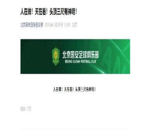 在足协周四宣布对13家俱乐部做出处罚之后,上海申花、上海海港第一时间做出回应、公开道歉。随后,北京国安发文表示,“人在做天在看!头顶三尺有神明。”大概一小时之后,北京国安删除了此文。长春亚泰、宁波俱乐部以及苏州东吴也在周四做出回应,表示尊重并且接受处罚决定。